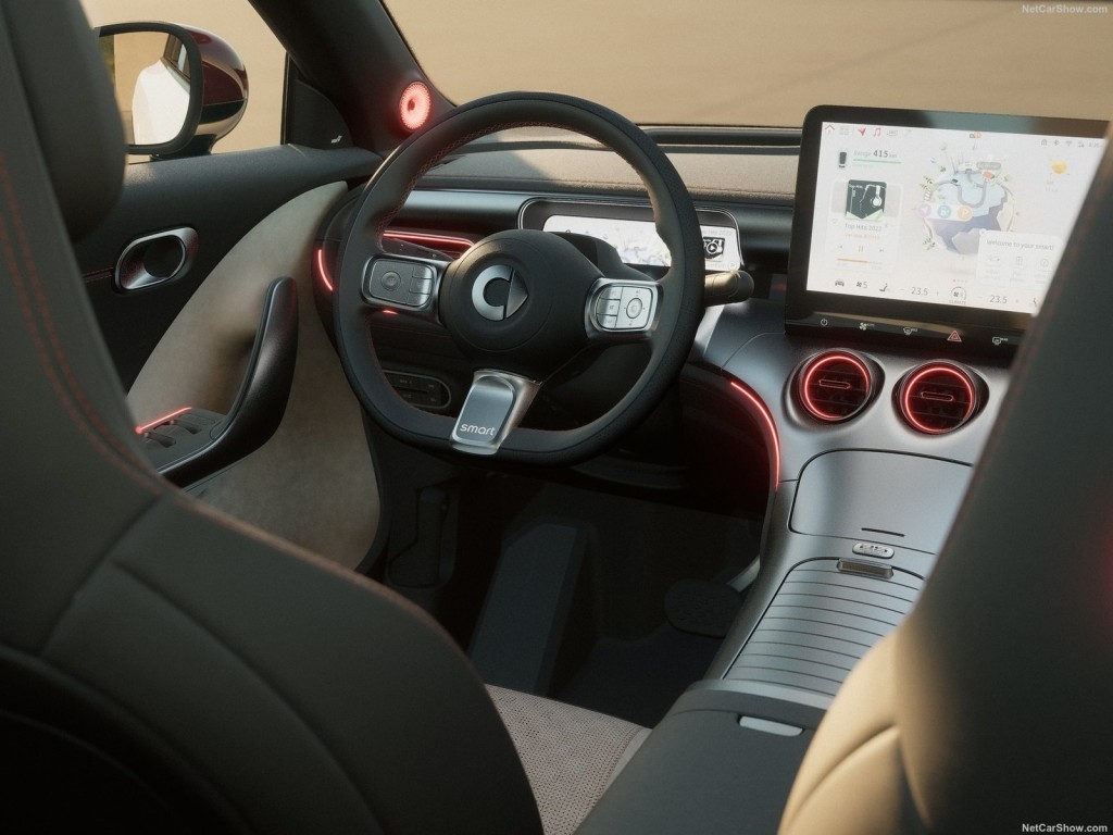 smart #3车身尺码为4,400 x 1,844 x 1,556 mm,轴距2,785mm,配上家族式流线化造型及贯穿式LED前后灯组,观感时尚吸睛。Brabus版本还换上20吋铝合金轮圈及加入一系列跑化配件,如网格式鬼面罩及红色头唇,大大提升了跑车味。内厢布局方面,smart #3采用家族式T字型中控台设计,配备12.8吋屏幕及9.2吋数码化仪表板,并设有10吋HUD投射式行车信息显示屏。与此同时,也支援Level 2辅助驾驶与搭载Avatar语音助手。