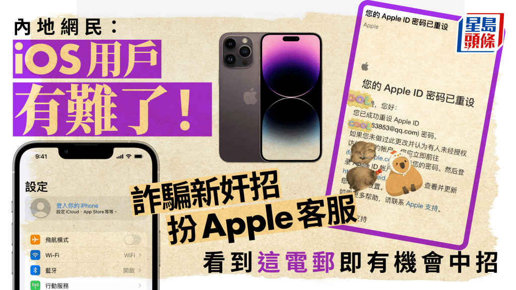 近日有网民怀疑自己堕入新型诈骗案。该网民日前在家中玩手机的时候,突然收到苹果公司的电邮,指她成功更改了新密码,并在电邮内附加连结查看。事主声称自己从未更改密码,觉得疑惑便点击连结查看。点击连结后,系统要求她输入手机屏幕密码,事主照做。进入连结后又要求事主输入苹果帐户(Apple ID)及验证码,事主照做了。最后系统弹出要求输入新密码,事主才顿觉不对劲,怀疑自己堕入新型诈骗案,担心已输入的密码会因此洩露,在小红书发文求救,以“iOS用户有难了!”为题,提醒其他用户中招。