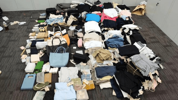 ▲民警上门时发现夫妻一屋子都是偷来的无印良品衣服。