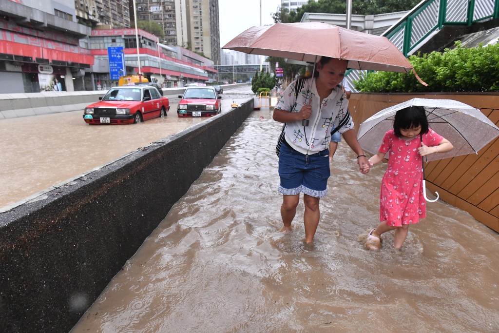 ▲黄大仙地铁站外龙翔道水浸。 陈极彰摄