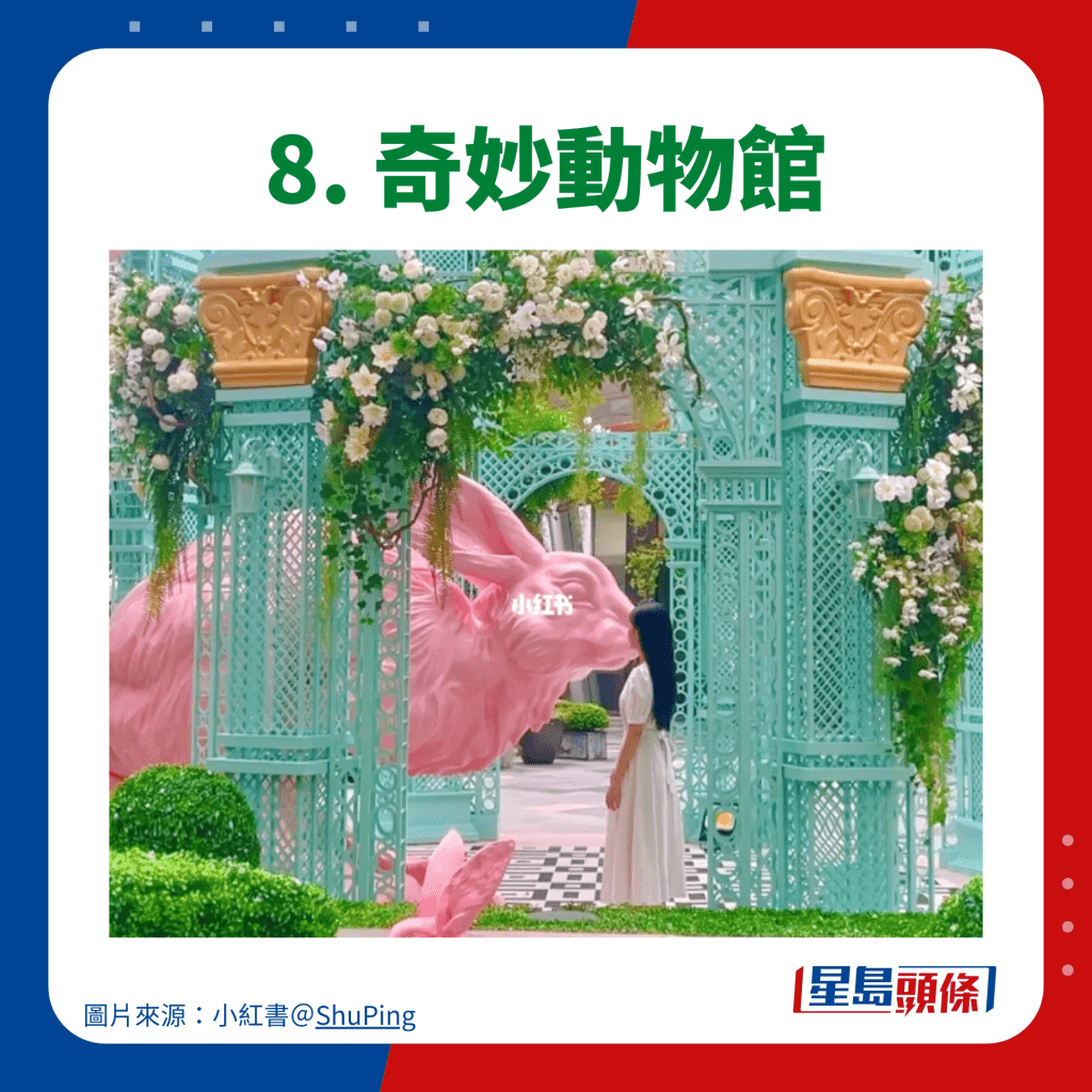 奇妙动物馆是深圳万象城8月新开的展览,极速成为近期最红的打卡地。宫殿风的庭院花园中伫立着数只粉红色的巨型兔子,置身其中有走进爱丽丝梦游仙境的错觉。除了兔子,还有黄色的巨型金刚、粉色猎豹、巨大化的鸟类等等,非常童话梦幻。整个展览分为“阿波罗长廊”、“镜花水苑”、“静夜之庭”、“悦动仙境”、“惊鸿梦园”5大主题,展期至11月,有兴趣的朋友要把握机会。