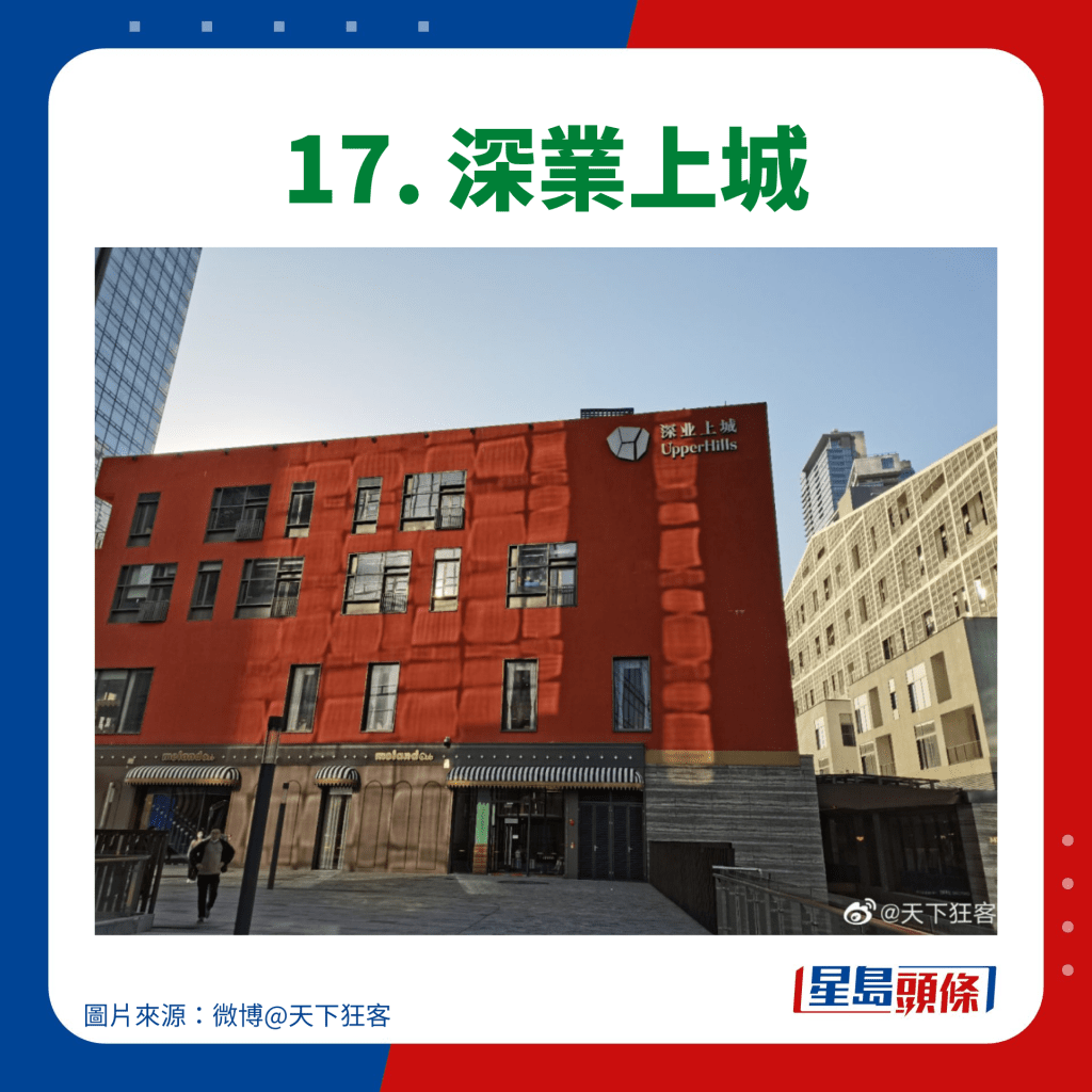 深业上城在2018年开幕,商场共有300多间店铺进驻,划分为生活体验街、时尚购物街等,除了购物外,深业上城最受欢迎便是“Loft小镇”,Loft小镇的建筑以红色、黄色、橙色、白色作主色,在横跨两边建筑物的天桥打卡十分有特色。
