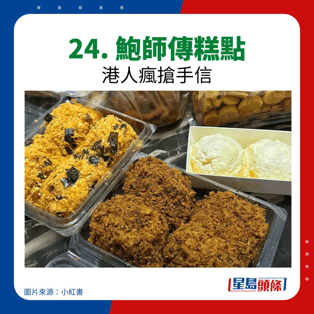 由深圳回港,沿途必定会看到有港人拿着一袋袋“鲍师傅糕点”。门店现烤的糕点,味道与外观同样出色。其中最受欢迎的招牌小贝蛋糕,松软的戚风蛋糕外层铺满了肉松,内馅加上独家秘制的爆酱,口感香脆松软,吃货必试。