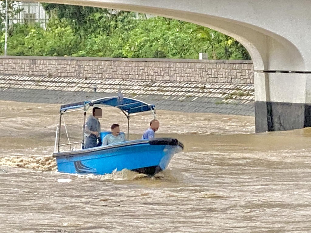 ▲林村河暴雨下,途人发现大叔随水漂流。