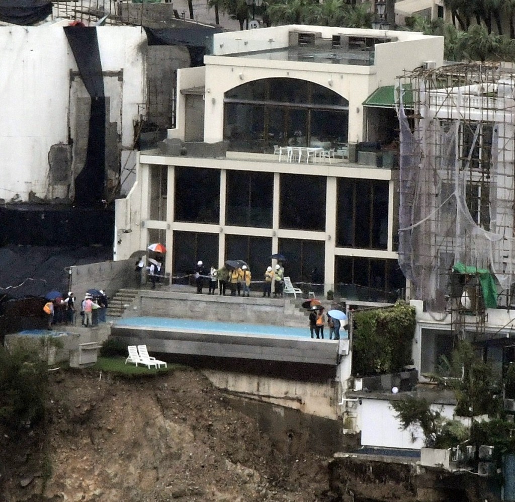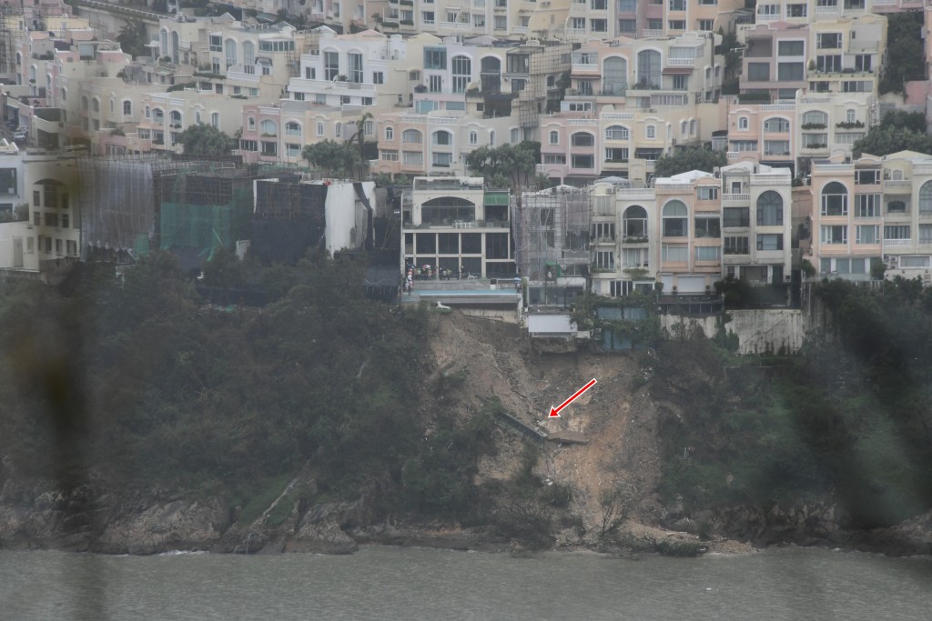 香港遭受“500年一遇”的暴雨侵袭,多处山泥倾泻,红山半岛一幅面积约两个篮球场的斜坡山泥倾泻,靠近山坡的三幢独立屋暴露悬崖边,其中一幢地基悬空,没有泥石支撑,安全堪忧,屋宇署人员昨晚视察后,发现第70、72及74号屋临海方向斜坡有山泥倾泻,其中72号屋有明显危险,即时要求警方疏散有关占用人。