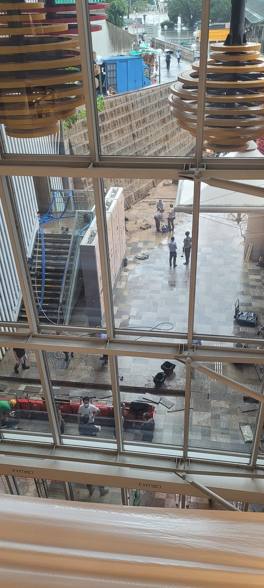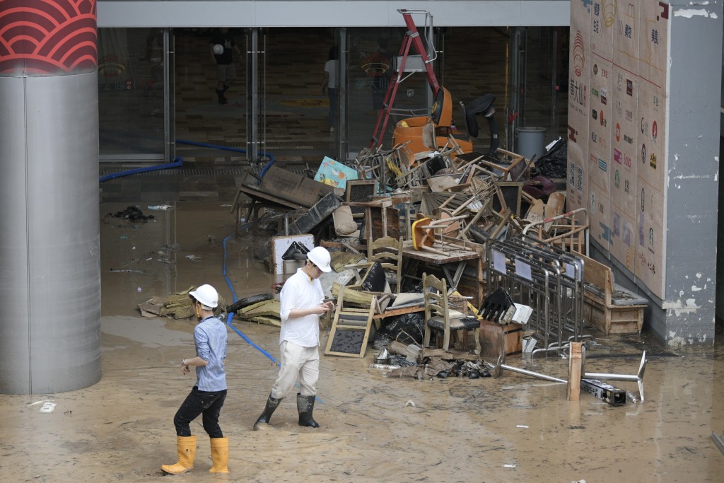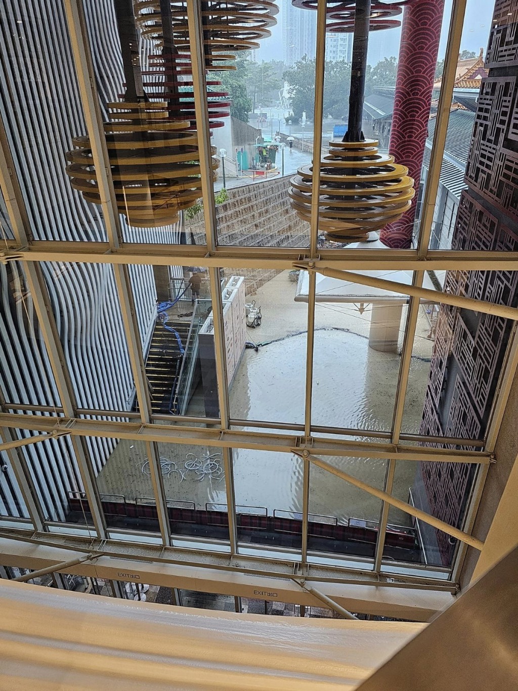 从网上图片可见,早前受暴雨影响被水淹半层的黄大仙中心北馆LG层,早上7时许再次出现轻微水浸,约8时25分更出现“小河流”,截至9时50分仍未将水排走。