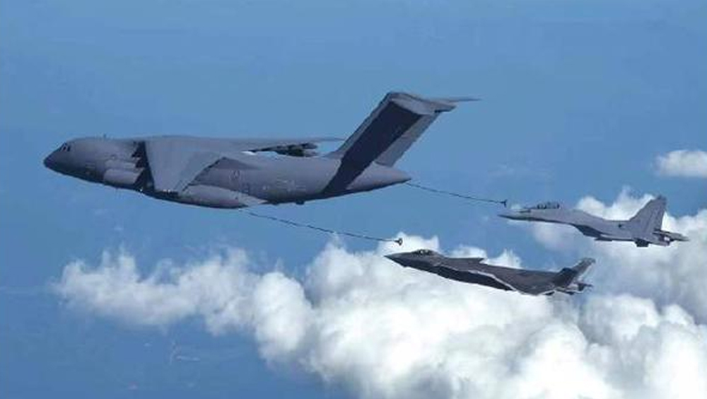 ▲空军展示运油-20、歼-20、歼-16三机同框照。