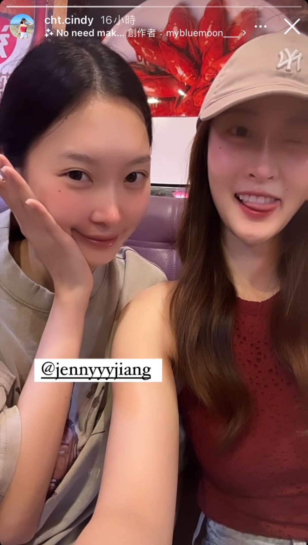 ▲陈晓彤懒理是非,昨日(11日)于IG Story贴出与“友谊小姐”姜依宁(左)的合照。