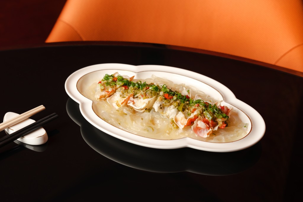 川菜馆Grand Majestic Sichuan向上世纪60年代著北角丽宫酒楼夜总会致敬,用餐环境舒适,装潢瑰丽堂皇。菜式方面,不但注重选材及味道,造型也精緻。餐厅除推出时令秋季菜谱外,大厨更特别创作了几道应节中秋菜,例如酒香麻辣凉拌海鲜,以自制酒糟拌匀鲍鱼、蚬贝、螺肉及象拔蚌仔,充满酒香又开胃。另有混合烧椒酱的日本帝王蟹脚肉凉皮(须48小时前预订),蟹肉爽弹鲜味。甜品三大炮是传统成都传统小吃,糯米糰沾上黄豆粉与红糖汁,口感烟韧清甜。