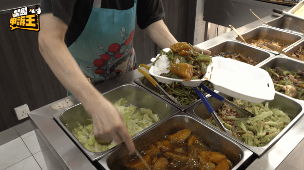 《星岛申诉王》午市造访餐厅,发现店内座无虚席,而且整个午市仍不时有地盘工、老街坊排队进来买饭盒。是日小菜都放在门口位置的长枱位置,有肉有菜让人看得清清楚楚,客人点了菜,老板也毫不吝啬,大舀大舀盛进铁盘或饭盒内,份量有如小山。