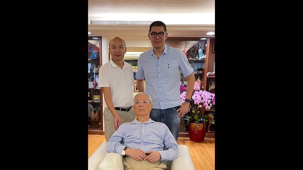 ▲连胜文(右)脸书曝光,高雄市前市长韩国瑜(左)北上探望前台湾副领导人连战(中)。 连胜文脸书