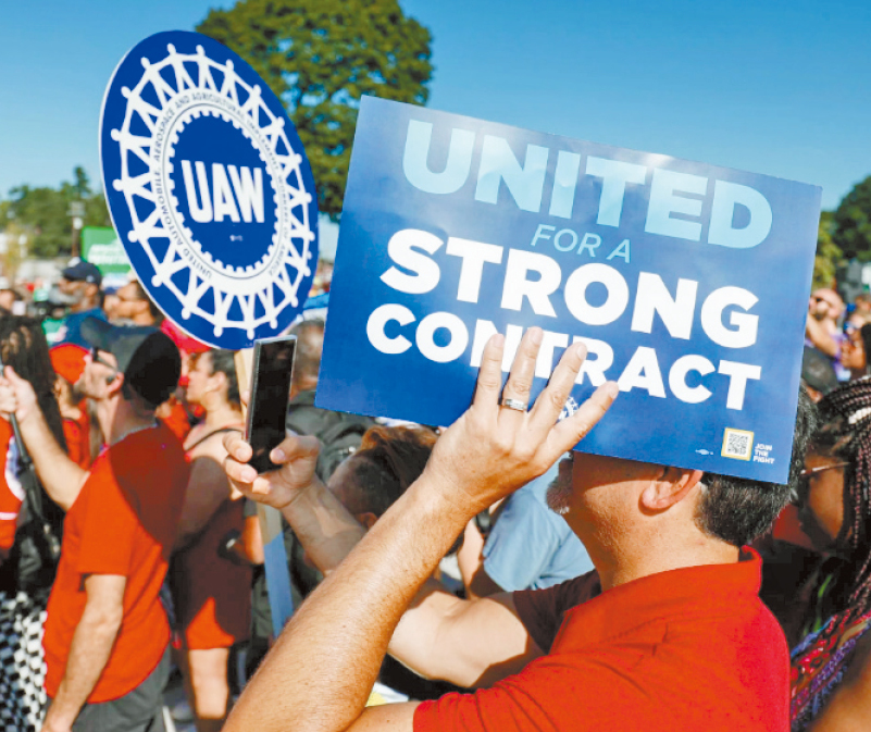 ▲美国汽车业迎来地震。图为汽车工人联合会成员参加集会。