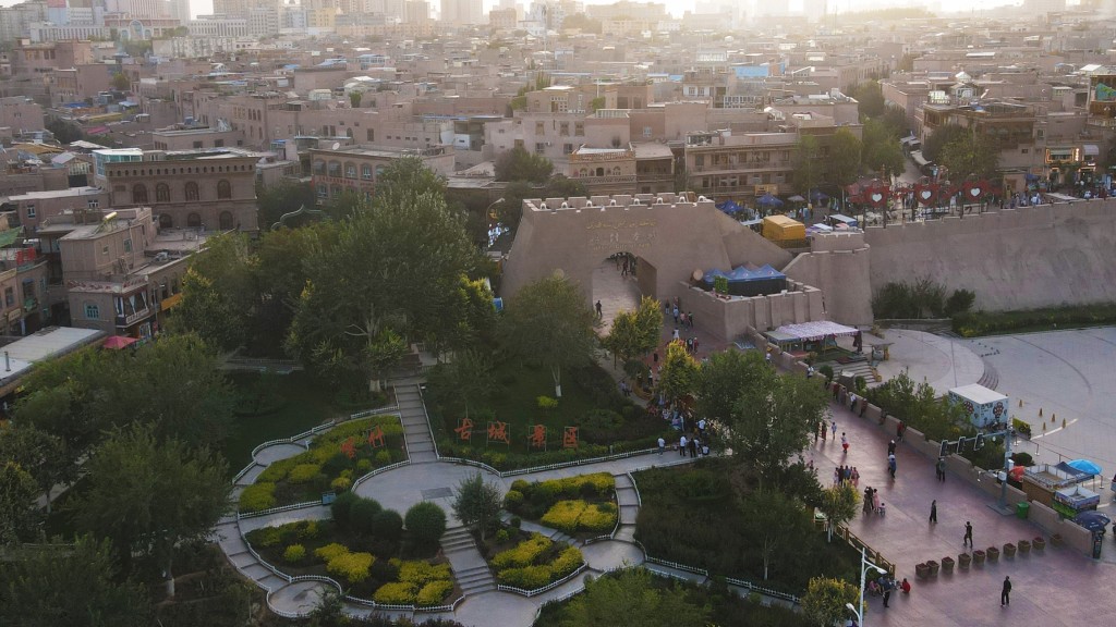 ▲无人机拍摄的新疆喀什古城景区。新华社