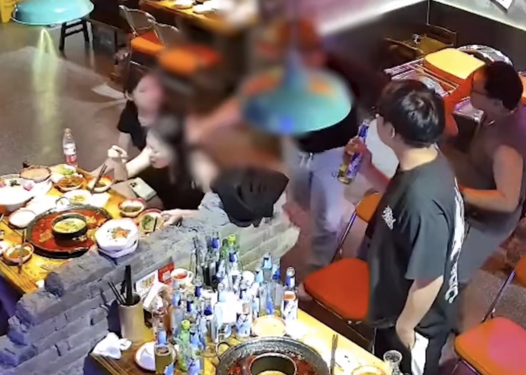 网传影片显示,事发于9月12日,女子在火锅店内与友人一起用餐,夹了食物正要放进嘴里时,一名女发男子突然从后伸手抓后颈,将女子扯落地,还不放手拖行了几步。