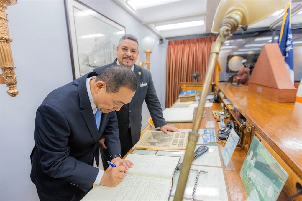 侯友宜特别在老罗斯总统的笔记上,签名纪念,侯友宜认为这也是一个省思,政府要清廉、公平正义,才会值得人民尊敬。