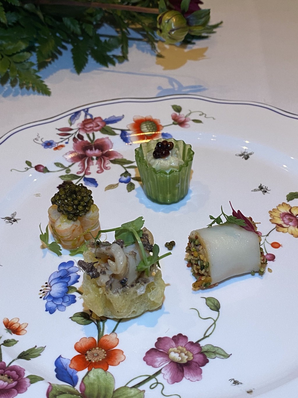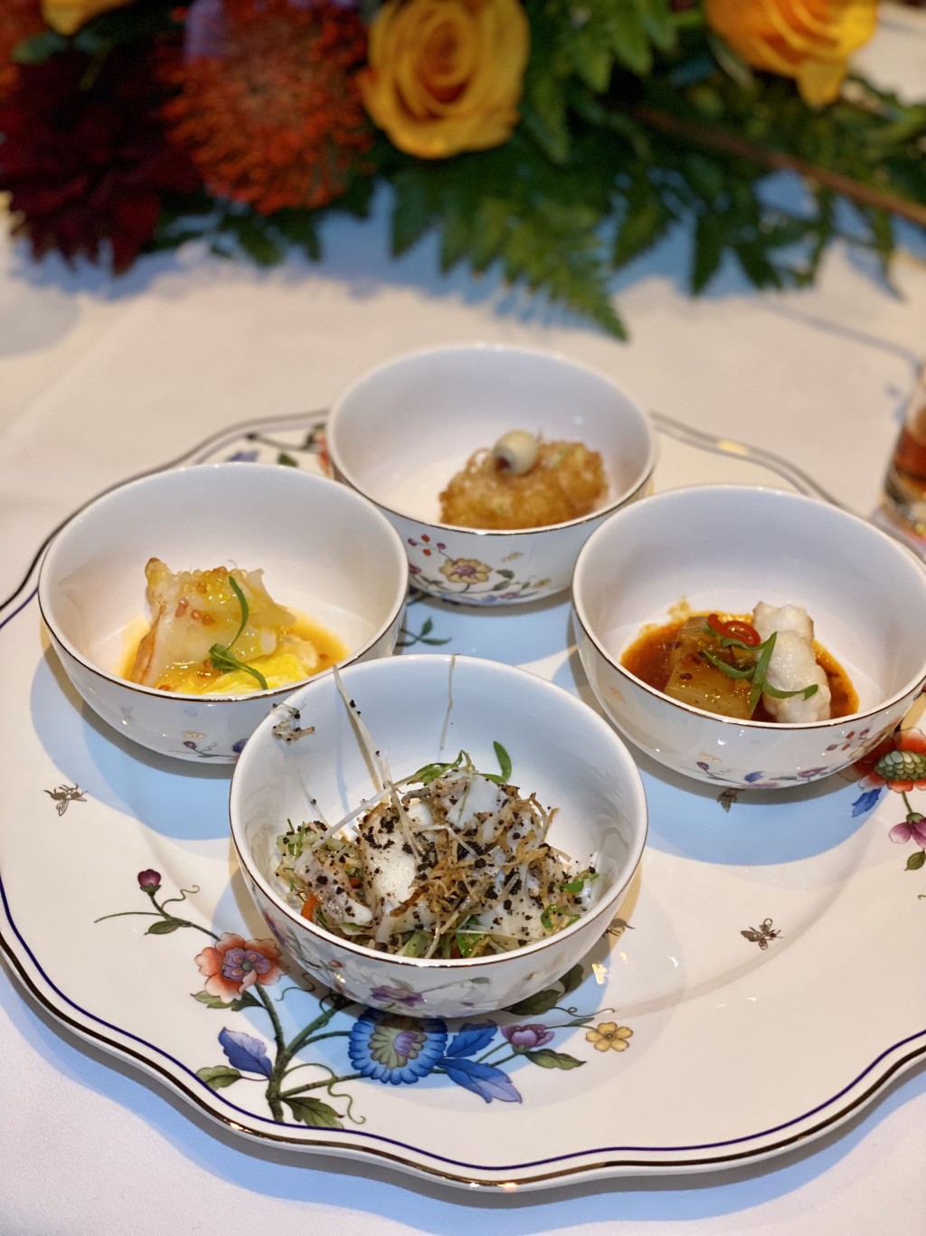是夜尝味晚宴,先送上4间酒店联手炮制的前菜四小碟,西安凯悦的风味葫芦鸡松茸米皮卷微丝辛辣,口感丰富;广州君悦的意大利黑醋子佐荔枝沙律风味清新;广州柏悦的黄金斑节虾肉质结实富弹性而鲜甜,且以鱼子酱点缀多一分贵气;主场Andaz的干巴菌拌螺片鲜香味美口感Crunchy,三城四味,风味各异。