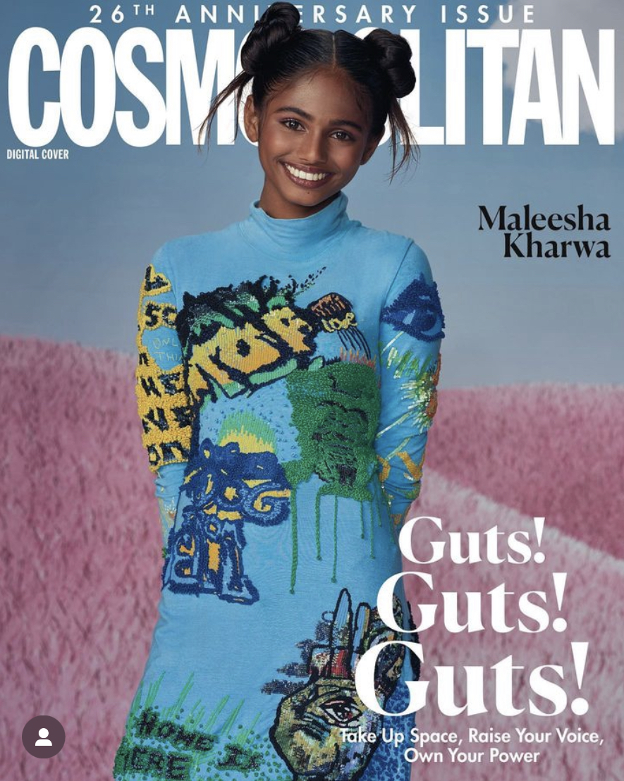 结果机会真的找上了她,陆续开始有人找她当模特儿。去年10月,她登上印度版《Cosmopolitan》封面,标题是“勇气!勇气!勇气!”。今年3 月,她还成为了印度奢侈化妆品品牌 Forest Essentials旗下年轻系列Yuvati的代言人。