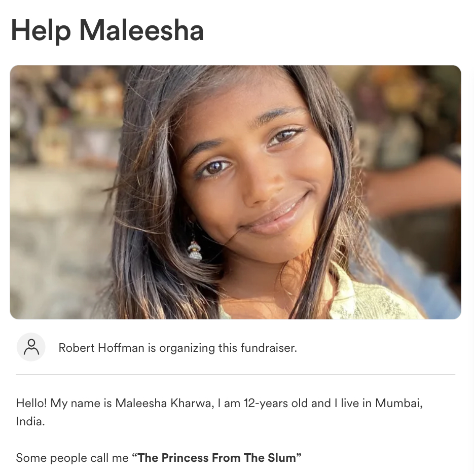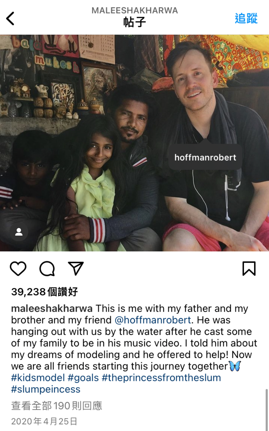 3年前一个好奇的美国游客走进孟买贫民窟,遇到了一位笑容;非常灿烂的小女孩。为了帮这个女孩改善生活,他为女孩设立了Go Fund Me,结果这女孩当上模特儿、成为网红,就象是奥斯卡经典电影《一百万零一夜》真人版。