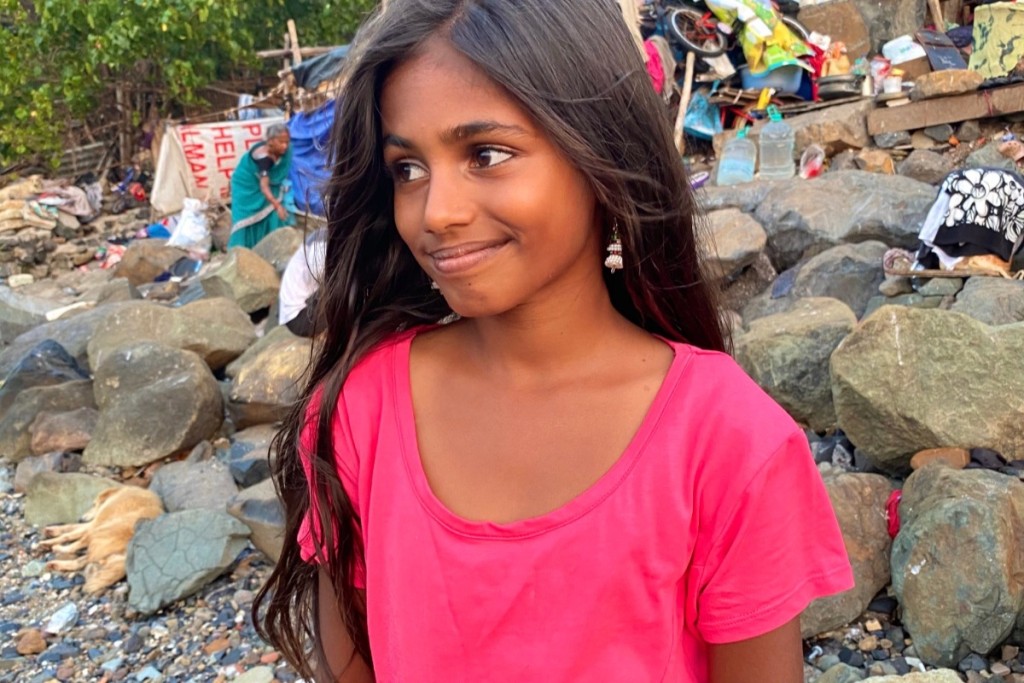 2020年,霍夫曼走进孟买贫民窟,遇到了这位笑容可掬、彬彬有礼,说话声音充演幸福的小女孩。 她的笑容掩盖了少年丧母的身世,以及贫穷的现实生活。