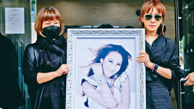 ▲在Coco和丈夫的“婚后协议书”中担任见证人的二姐李思林(右),手捧Coco遗照送最后一程。