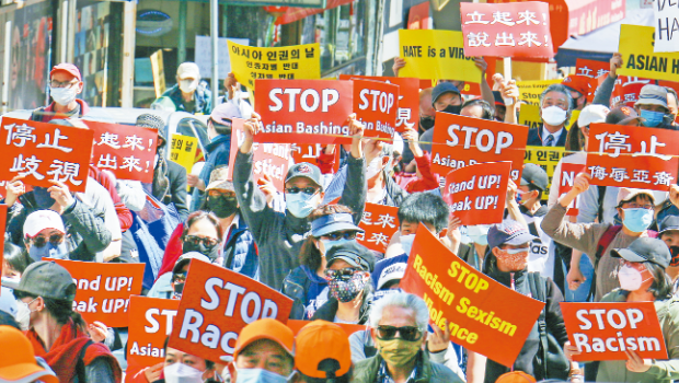 ▲图为湾区举行反仇视亚裔大游行。 本报记者彭诗乔图片