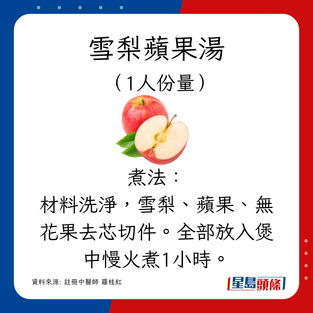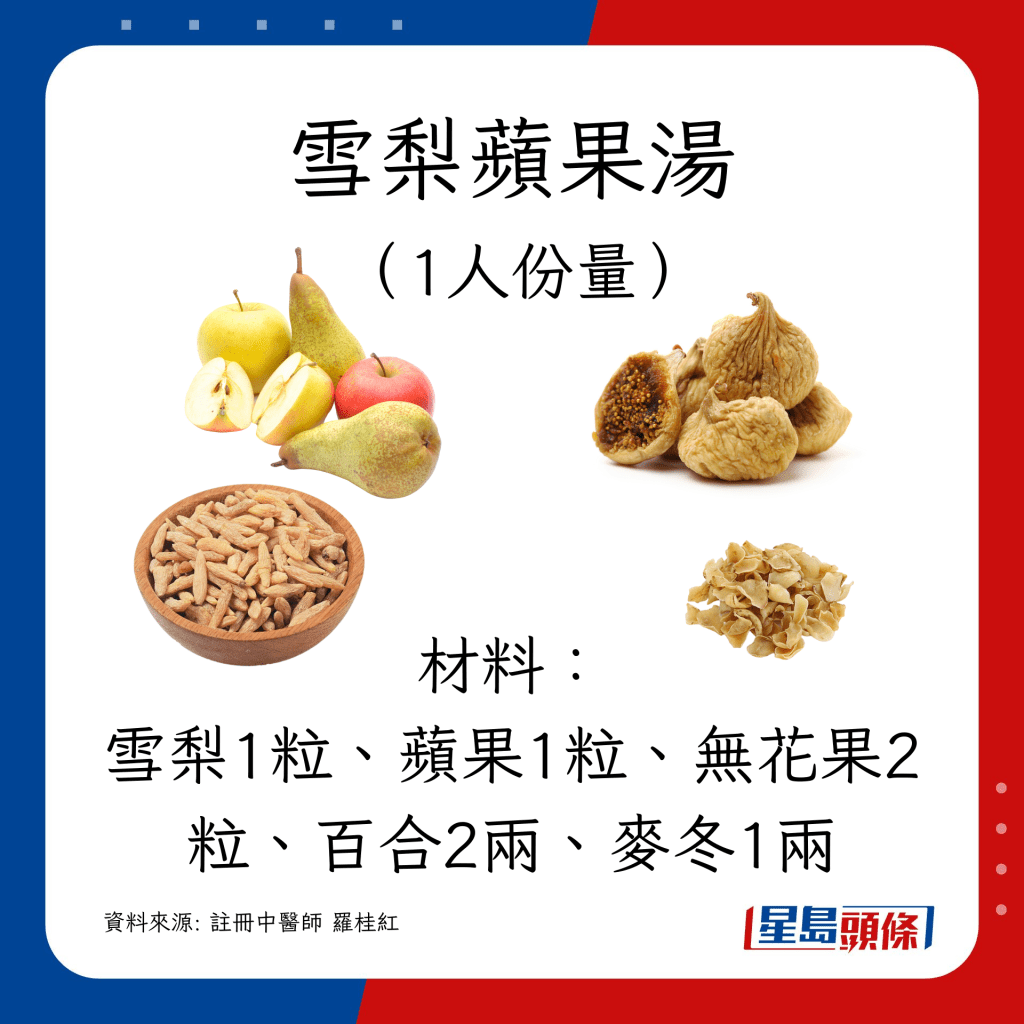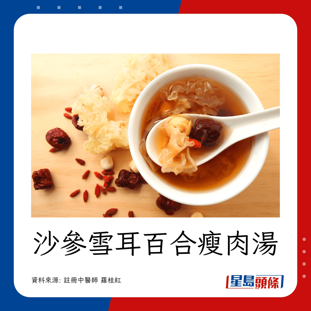 秋分宜喝什么汤水养生?注册中医师罗桂红君推介以下4款汤水,主要有健脾润燥等的功效,可减低秋分天气带来不适情况: