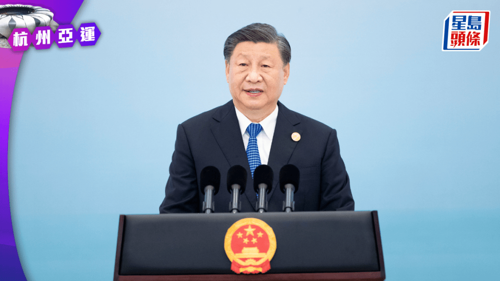 ▲习近平在杭州亚运开幕式国际贵宾欢迎宴会上发表致辞。 新华社