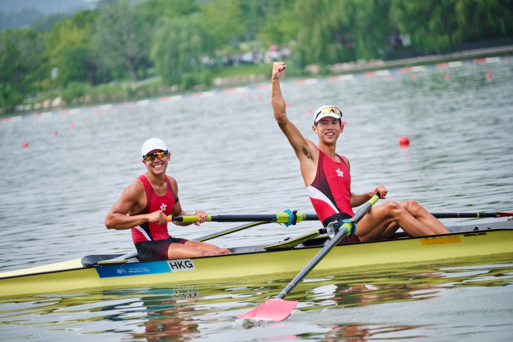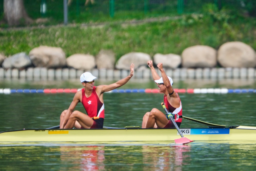 杭州亚运开幕礼首日比赛,港队林新栋与王玮骏组合于男子双人单桨无舵艇决赛以6分44秒20力克乌兹别克组合,为香港代表队拿下今届亚运首金。