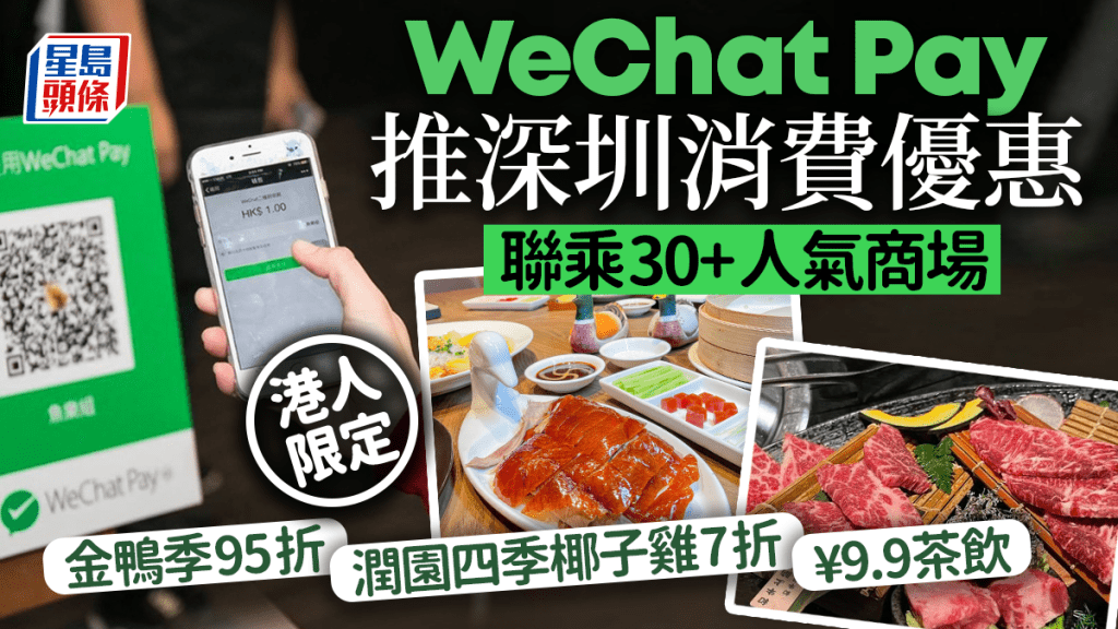 WeChat Pay HK宣布由即日起推出港人限定商场优惠,涵盖30间深圳人气商场,包括全新开幕的罗湖KK TIME、福田星河COCO Park、深业上城、One Avenue卓悦中心等,过百间人气食肆及商铺都有份!WeChat Pay深圳商场优惠包括金鸭季全单95折、¥199叹二人椰子鸡套餐、日式居酒屋满指定金额即减¥100等,假期北上吃喝玩乐更抵玩!