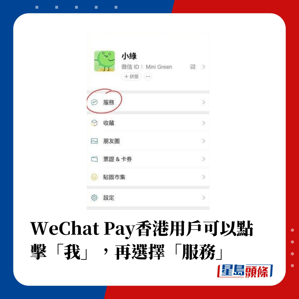 ▲WeChat Pay香港用户可以点击“我”,再选择“服务”