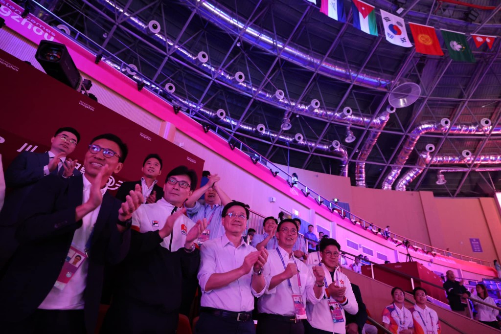 ▲行政长官李家超在现场观赛,见证张家朗夺金。李家超fb