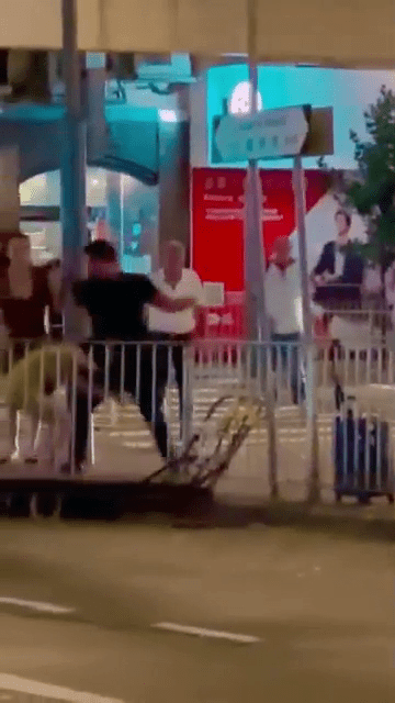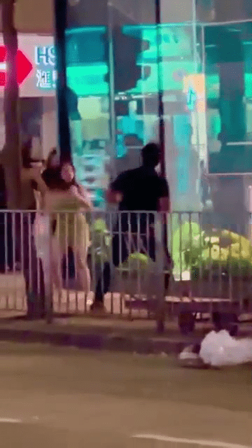 网上近日流传一段短片,显示湾仔卢押道及骆克道交界,有两男女夜晚时分在街头互相殴斗。片段所见,绿色短裙女在倾电话期间,突然遭一名黑衣壮汉从后打头,原因不明。及后短裙女暴起还击,不断向壮汉扔杂物之余,又拿手袋作武器不断攻击,甚至“起飞脚”,逼得壮汉节节败退,即使有途人劝架也无不于事。
