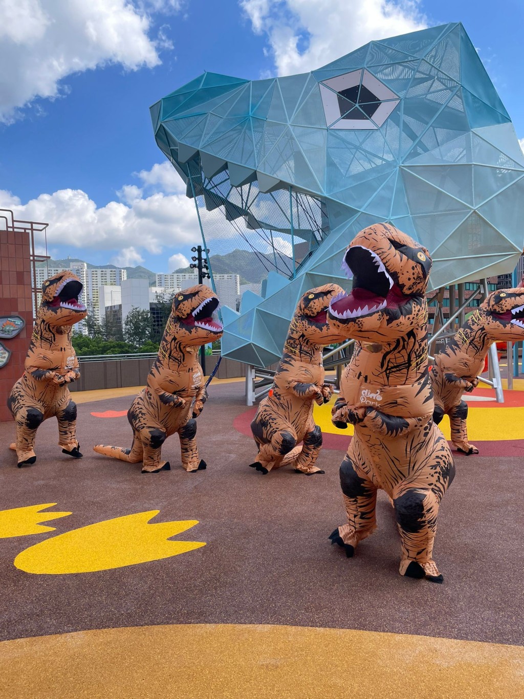 .有专人提供恐龙造型扭波波、恐龙探险工作坊、棉花糖放送等,恐龙军团更会现身园区大跳劲舞及与大家合照。