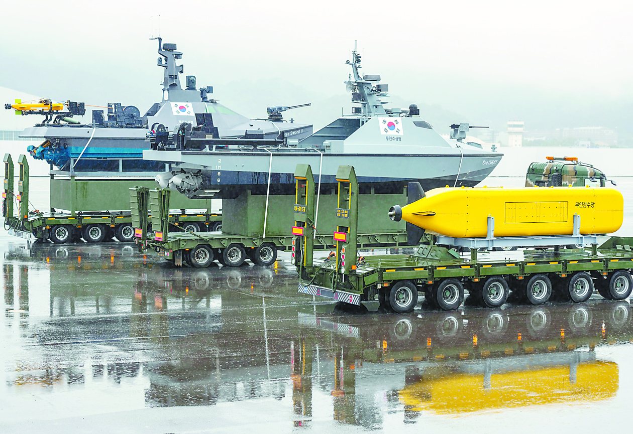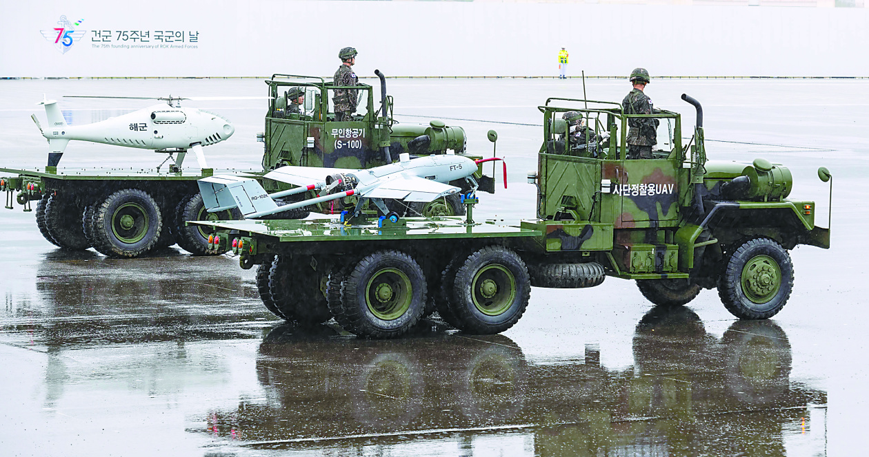 此外,26日阅兵式上展示的由新成立的无人机作战司令部负责的多型小型无人机也引起了外界关注。其中包括具有隐形功能的小型无人机、自杀式无人机、远程侦察用无人机,表明韩军已具备无人机体系化作战能力。此外,能监视100公里外目标的中空无人侦察机以及水面无人艇、水下无人航行器也公开亮相。
