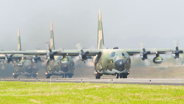 ▲台军8月秘密出动C-130运输机载运官兵到帕劳。中时资料照片