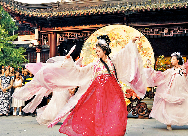 ▲上海豫园仲秋月神游的精彩传统舞蹈表演。