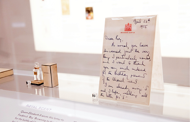 ▲由已故英女皇伊利沙伯二世撰写的信,内容是向送赠她N°5香水的友人致谢。