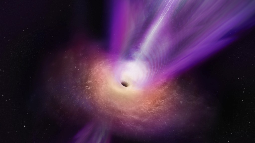 活动星系中心的超大品质黑洞,堪称宇宙中最具破坏性的神秘天体之一。它们引力巨大,通过吸积盘“吃进”大量物质,同时又将物质以接近光速的高速“吐出来”,力量之大可以“吐到”数千光年以外。宇宙中到底有什么力量可以改变黑洞喷流方向,使其产生周期性摆动呢?