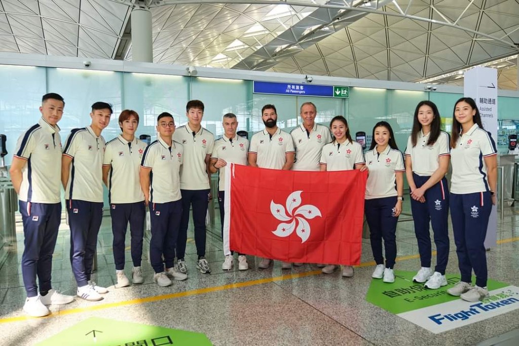 ▲朱嘉望(右三)早前随队出发往杭州出战亚运。