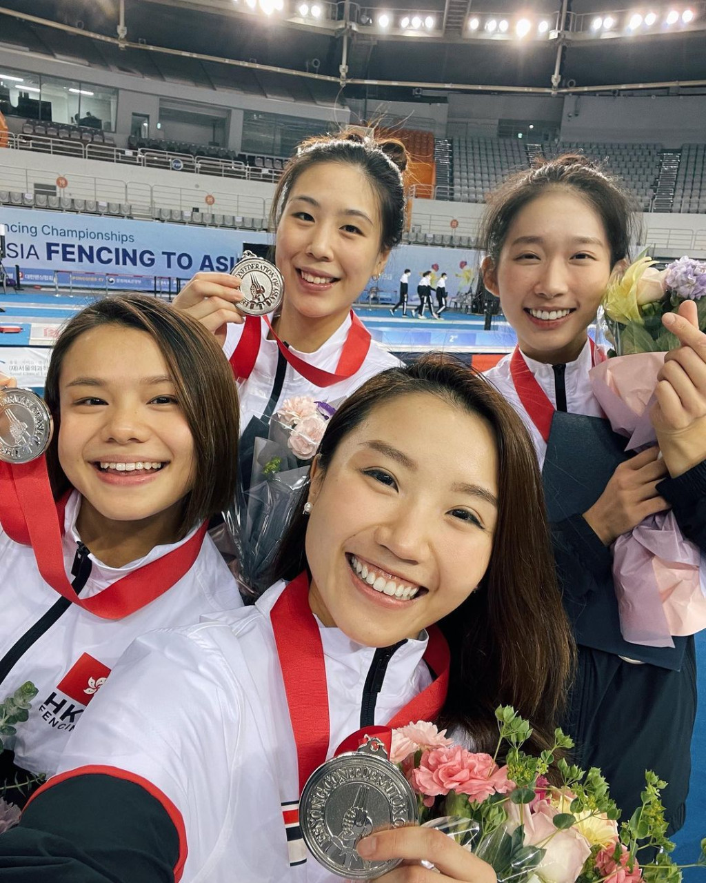 ▲由江旻憓、陈渭泠、畲缮妡及朱嘉望组成的香港女子重剑队,于杭州亚运夺银创历史。