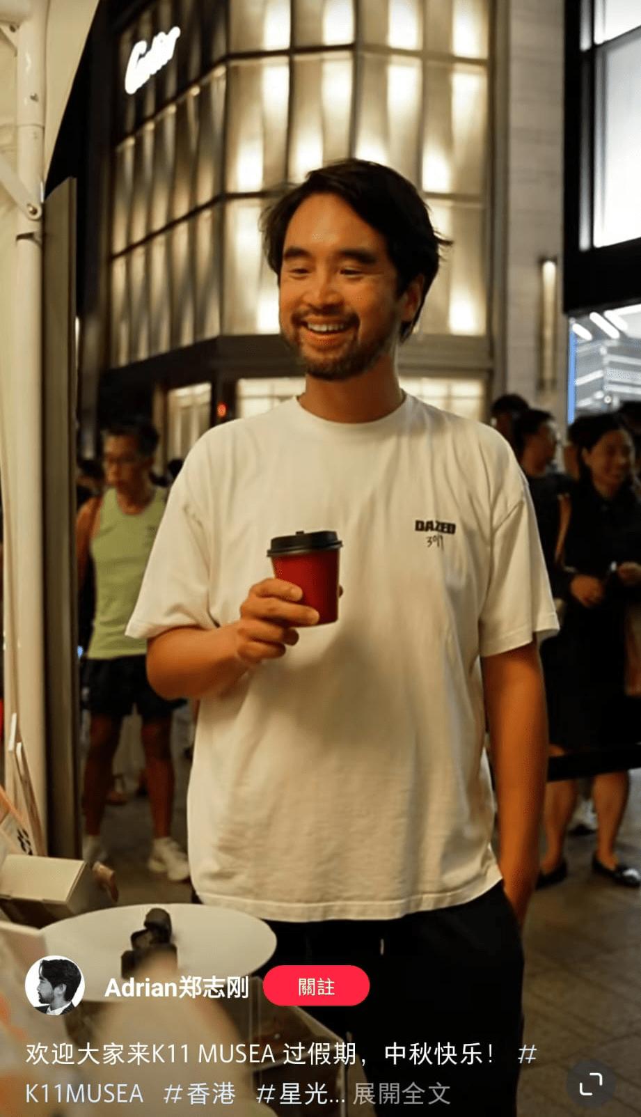 ▲郑志刚近日被网民于《小红书》“野生捕获”参加夜市,他其后亦向网民祝贺中秋。网上截图
