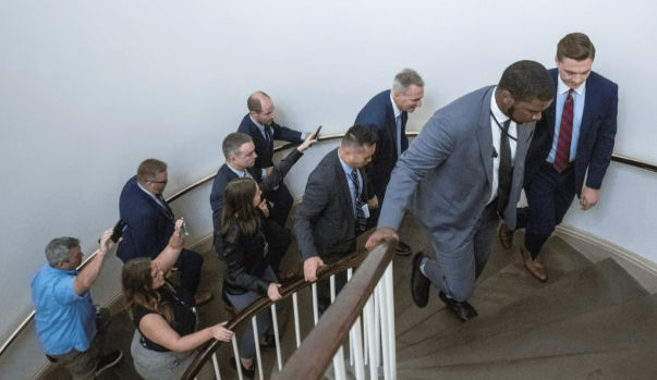 被问到会否担心议长之位不保时,麦卡锡说:“如果我必须冒着失去工作的危险来捍卫美国公众,我会这么做。”