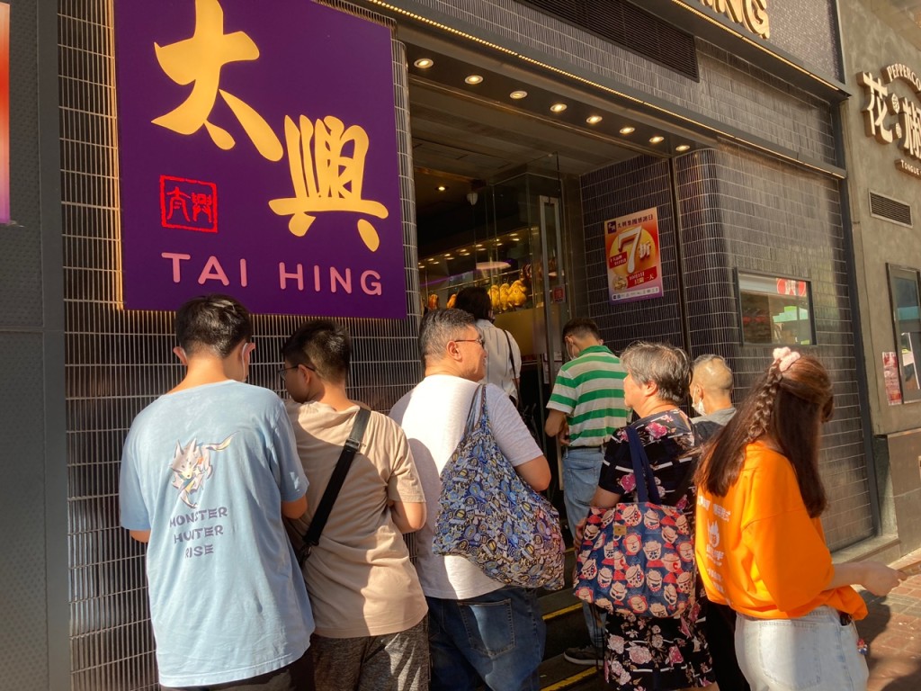 旺角太兴在下午茶时段排了长长的人龙,相邻的阿参鸡饭有员工指下午1时起已见太兴“打晒蛇饼”,自家店铺亦生意兴隆,食客需等候十多分钟才能入内用膳,“但不少长者唔太清楚有折。”太兴店员指今日堂食七折,人流较平日周末多,但不少食客均是内地游客,根本不清楚有优惠,并非为折扣而来。旺角敏华冰厅下午时段亦持续有十多名食客等候购买食物。