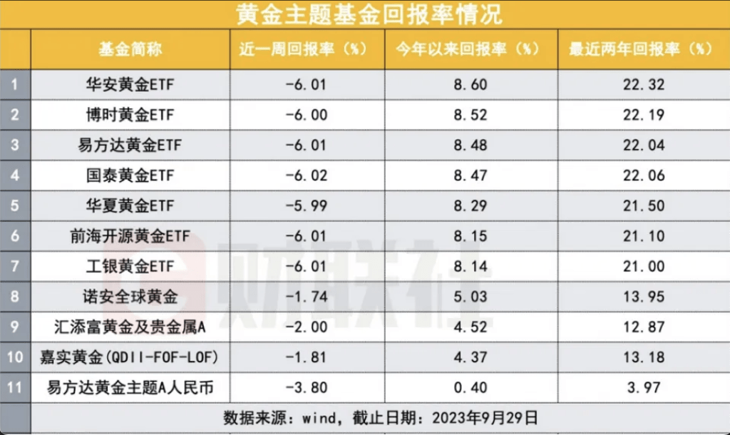 截至9月中旬,国内黄金ETF类基金涨幅超过14%,惟经历9月底调整,多只黄金ETF单周跌幅约6%。