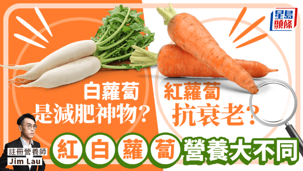 红萝卜、白萝卜除了属性不同,一个平性,一个寒凉,营养及功效也不同!注册营养师Jim Lau表示,白萝卜为减肥神器,而红萝卜则是天然的综合维他命。到底是什么原因?哪种萝卜更有营养?
