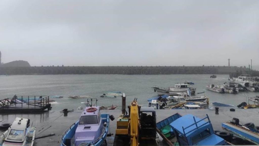 ▲台湾兰屿开元港逾7成渔船被吹沉或翻侧。 中时新闻