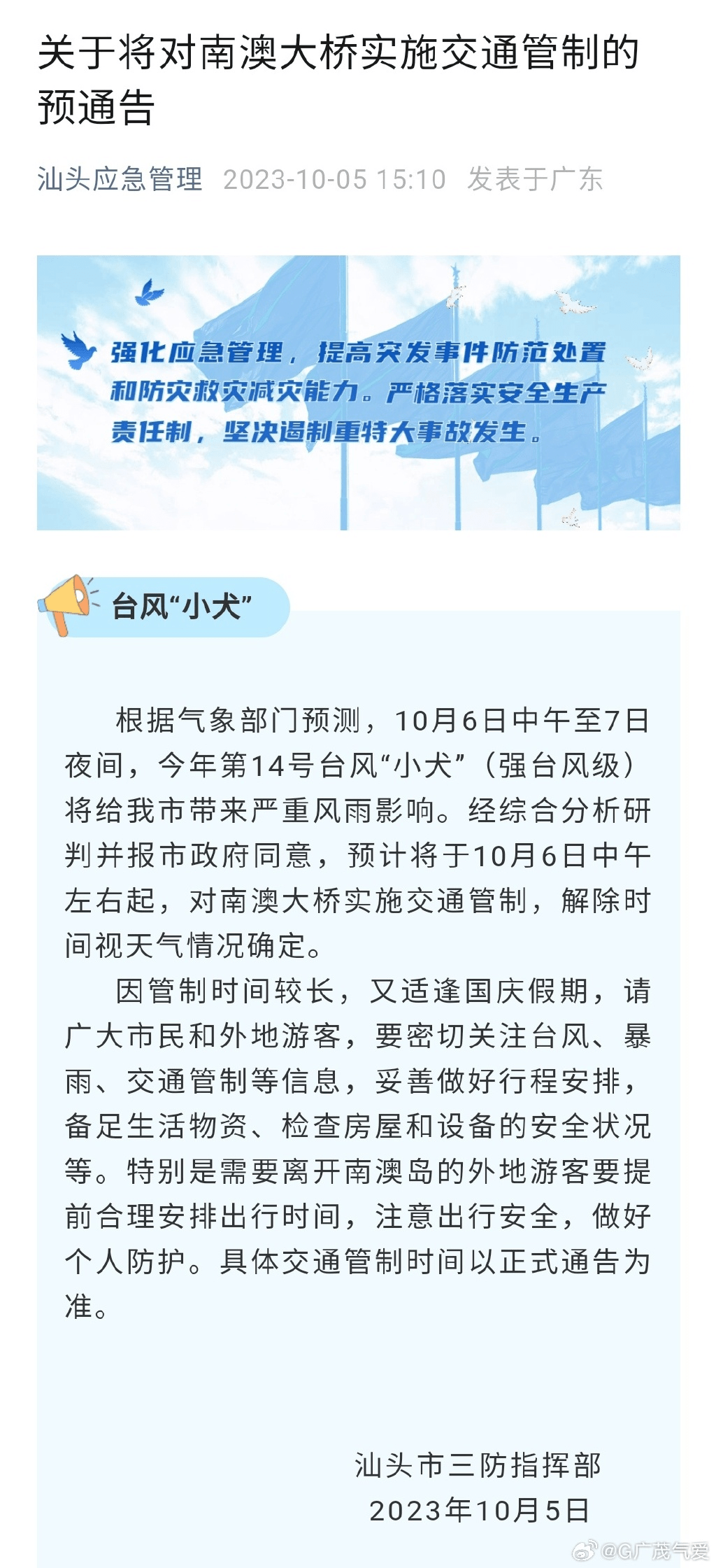 ▲台风小犬本周六登陆或掠过粤东沿海,汕头宣布10月6日起停课。