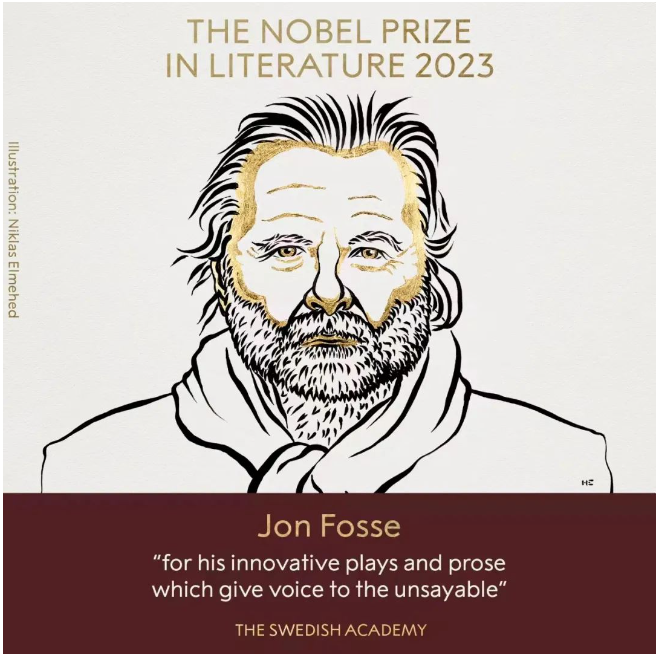 据澎湃新闻报道,瑞典斯德哥尔摩当地时间2023年10月5日13:00(北京时间19:00),瑞典学院将2023年度诺贝尔文学奖颁给了挪威剧作家约翰·福瑟(Jon Fosse),以表彰他“创新的戏剧和散文,为不可言说的事情发声”。