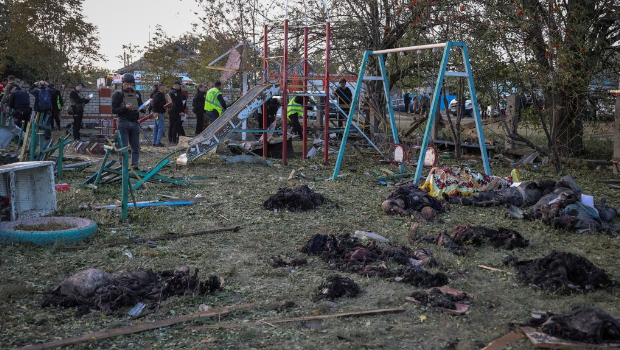 ▲袭击波及附近一个儿童游乐场,尸体残肢散落一地。路透社