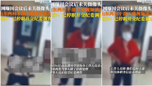 一段网传视频中,疑似有多个监控场景的视频会议监控画面里,其中有一个场景中,疑似有一男一女正在办公室里发生性行为。